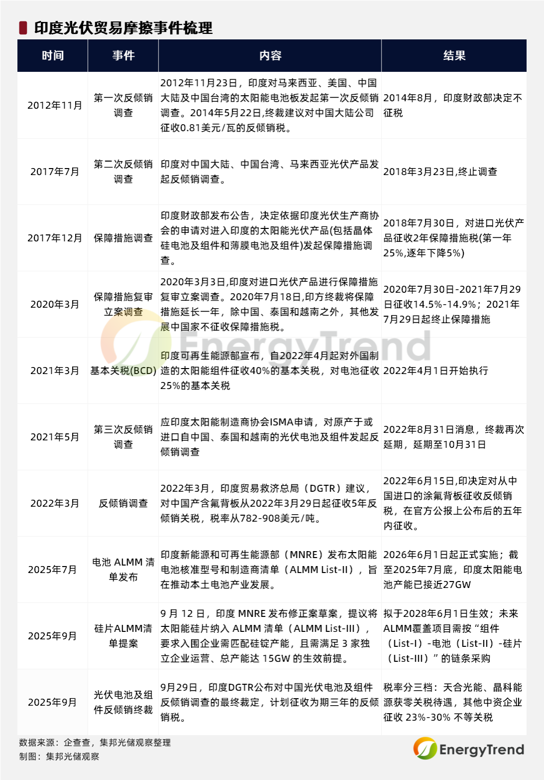 印度的贸易政策收紧趋势显著,从早期反倾销税到2024年生效的ALMM清单,再到2025年9月终裁的3年反倾销税政策,印度对华光伏产品的贸易保护壁垒持续升级,其核心诉求清晰明确。